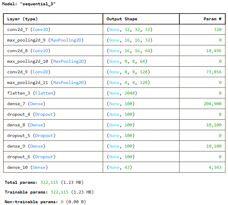 아래 합성곱 층으로 내려갈 때 뉴런의 개수를 늘렸는데 중간에 MaxPooling2D(Dropout을 적용해도 동일) 을 적용했기 때문에 실제 파라미터의 개수가 줄어들어 사용되므로 늘린 티가 나지 않음