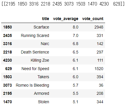 장르 리스트 안에서 같은 단어가 나올 수 없으니 등장 횟수만을 기반으로 하는 CountVectorizer 사용