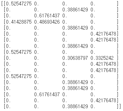 # CountVectorizer를 적용하기 위해 공백문자로 word 단위가 구분되는 문자열로 변환.