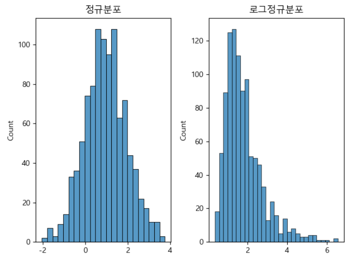 - 타겟이 연속형인 경우 정규 분포에 가까운지 확인해서 한쪽으로 몰려있으면 로그변환으로 분포 변경