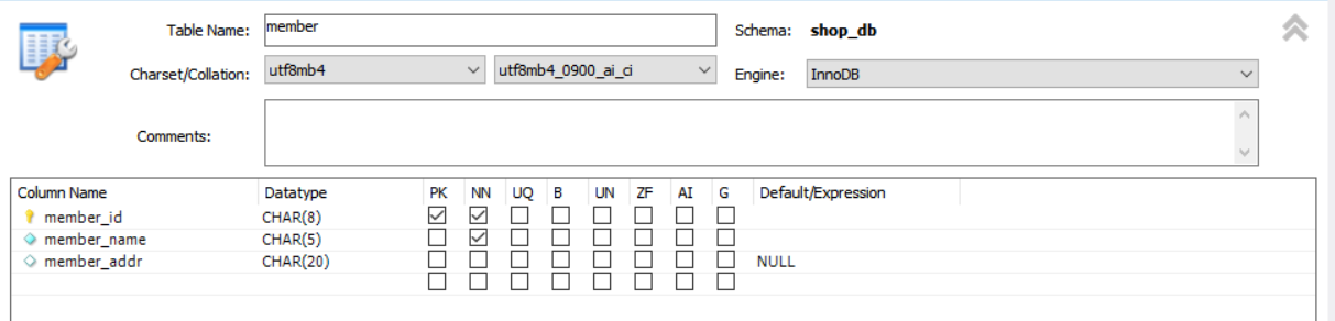 - LEFT OUTER JOIN: 왼쪽 테이블(member)의 내용은 모두 출력되어야 한다.