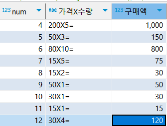 - 그래서 상호 조인 결과의 전체 행 개수는 두 테이블의 각 행의 개수를 곱한 개수가 된다.