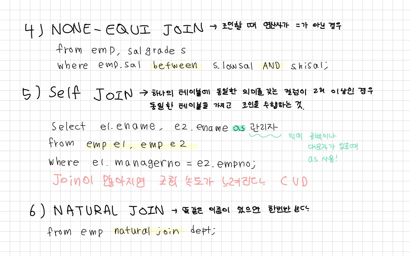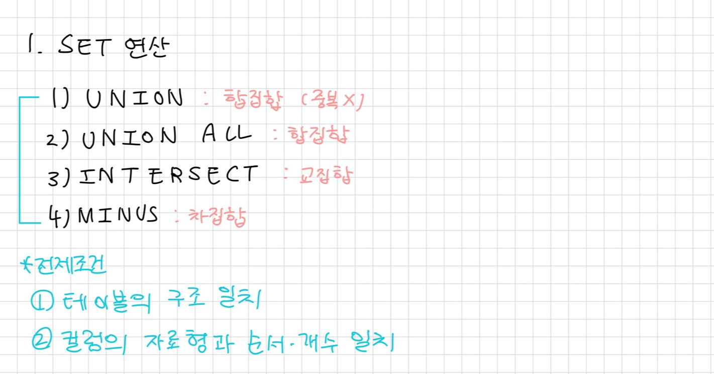 - SELECT할 때 겹치는 열 이름은 어떤 테이블의 열인지 명확하게 표현해야 함!